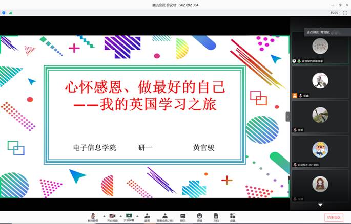 第二部分由研究生代表黄官骏,本科生代表杨孝彬、张文博为同学们分享抗疫故事。黄官骏同学主要和学弟学妹分享了在英国交流学习的感受以及在疫情期间辗转回国的经历,他深刻体会到国内外抗击疫情的差别,怀揣一颗感恩之心感谢祖国母亲及亚洲av