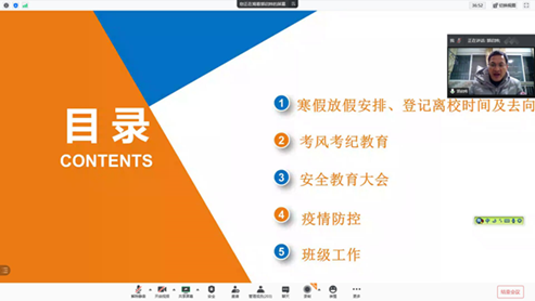 5、班级工作,会议最后强调离校前完成好班会、安全承诺书登记等班级工作。