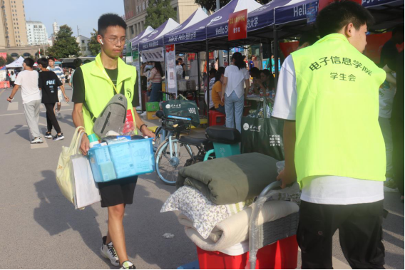 志愿者在南门、迎新点、学生宿舍三点一线,荧光绿的身影充斥着整条街道。一路上,志愿者引导新生报到、帮忙搬运行李、解答新生的各类疑惑,让初入长大的他们感受到一个热情的长大、安全的长大、温暖的长大、智慧的长大以及惊喜的长大。在志愿者的帮助和陪伴下,新生们展露出笑容,与志愿者有说有笑,对未来的大学生活满怀憧憬。辛苦每一位无私奉献的志愿者们,是他们的努力让新生感受到了属于电信学院的温暖。