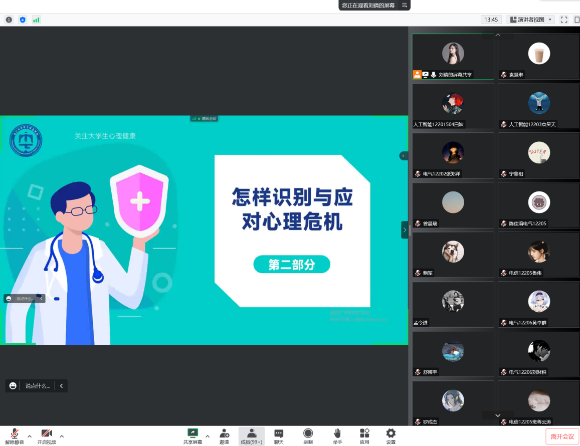 心理健康教育是促进学生身心健康、塑造健全人格品质,有效培养担当民族复兴大任时代新人的重要环节和有效途径。近年来,大学生由于心理问题导致的危机事件频频发生,引导大学生关注自身心理健康已迫在眉睫。而新生入学之初,会出现各种适应方面的困惑,对于心理健康与心理咨询也存在着一定误解。因此,11月11日晚上7点,电子信息学院针对全体新生骨干开展心理健康教育培训,培训于新风公寓学工办党员活动室进行线上线下同步开展,以给学生接种心理疫苗,对于可能出现的心理困惑有所准备,指导新生骨干掌握识别与应对心理危机的技能为目的,为亚洲av