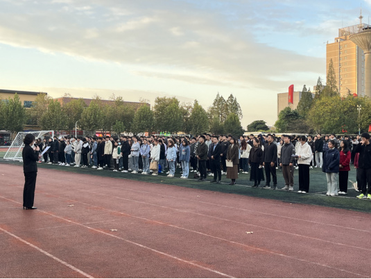 在东校区老田径场举行升旗仪式。院党委副书记张晨露,全体辅导员和2022级、2023级全体本科生参加。仪式由电信类12301班李悦嘉同学主持。