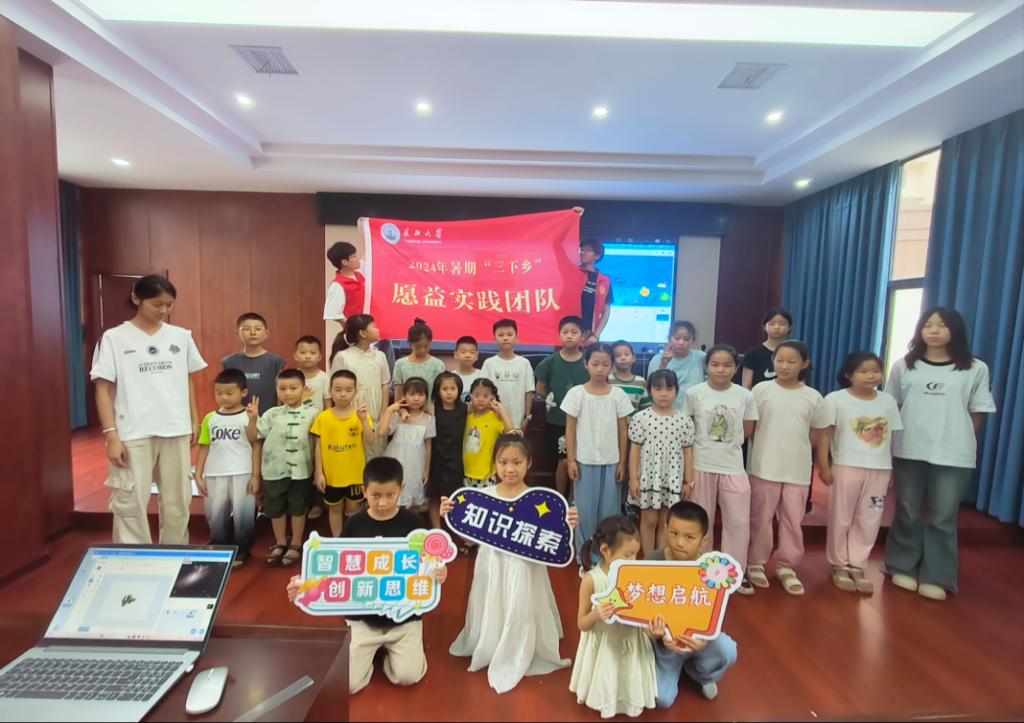 出发赶赴荆州市江陵县。队员们宣传了科技的知识以外,还以传统文化为主线,涵盖阅读、艺术和游戏,以艺术(绘画、舞蹈和音乐)为切入点,将大语文、大思政融入传统文化教育中,制作素质国学课程,通过视频作品制作和实践应用将线上线下相结合起来,为小朋友们提供审美教育,提高其审美能力,促进儿童全面发展,为“兴农”和“兴文”提供助力。宣讲国画,人文典故等采用寓教于乐的方式。在玩中学,学中玩,体悟古诗词中的传统文化。此外,还可以通过亲子互动,小朋友和家长一同完成涂鸦作品,在创作中领悟中华传统美学的同时促进了亲子关系的进步。