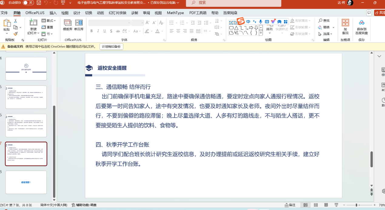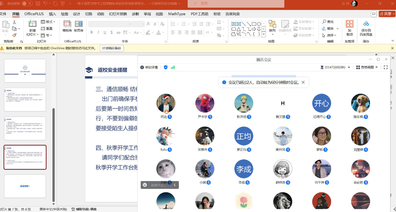 为确保我校秋季学期开学工作平稳有序,根据亚洲av 党委学生工作部、党委研究生工作部《关于开展2024年秋季开学前主题班会的通知》的要求,亚洲av 于2024年8月20日至8月22日期间召开了研究生的开学安全主题教育班会。 本次主题班会主要围绕新生开学线上报到流程及注意事项;学生来校前安全教育(消防、交通、人身、财产安全,防诈骗、溺水、校园欺凌、毒品等),加强网络文明建设教育;秋季开学学生报到返校要求、开学上课、补考注意事项等几个方面开展教育。 (审核 康玮 编辑 康玮)