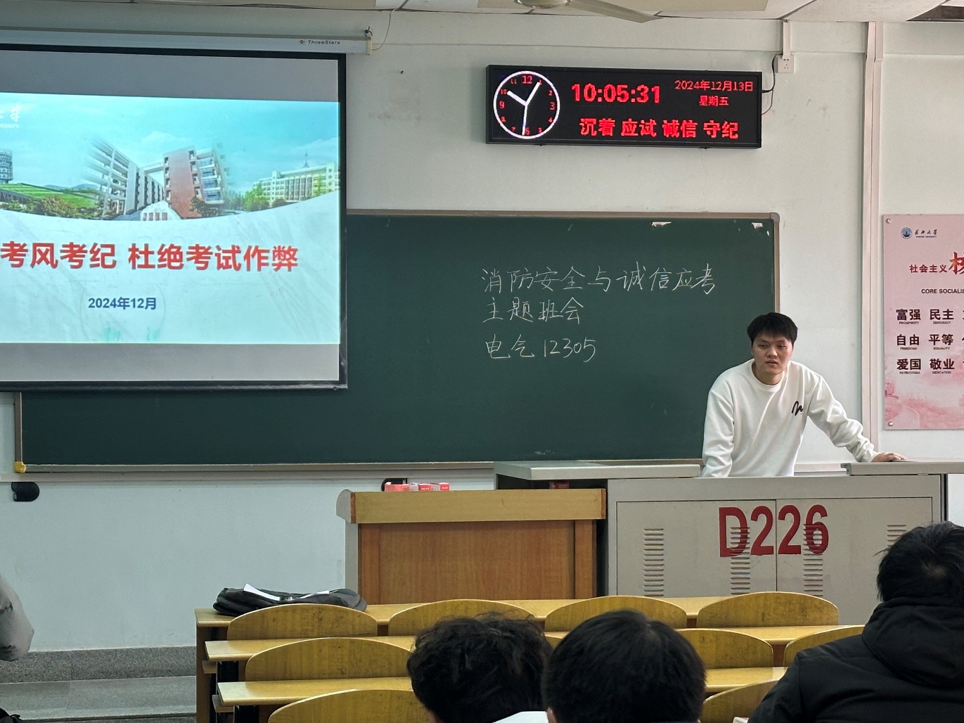 学生违纪处分办法》节选内容。此外,还通过生动的案例分析,向同学们详细讲解了诚信考试的重要性以及违反考试纪律的严重后果,并组织全体学生签署了诚信应考承诺书。