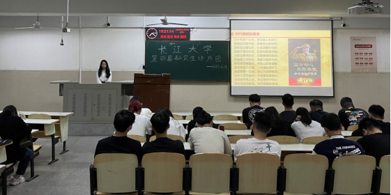 “2019年6月,一位耄耋老人被中国共产党中央委员会授予‘时代楷模’称号……”来自法学院的主讲人文芬琴同学通过引入 “时代楷模”张富清同志的故事呼吁新时代青年“坚守初心,不改本色”、“学习榜样,建设祖国”。