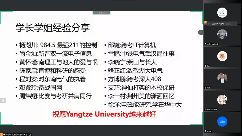 (通讯员 何达)努力拼搏,放飞考研梦想;激情飞扬,彰显青春魅力。为进一步加强同学们对研究生入学考试的认识,了解前沿的就业形势、增强考研斗志。423日晚,学院在线上举办了电气及其自动化就业&考研分享交流会。会议由2017级部分优秀毕业生主讲,2019级电气及自动化专业的同学们聆听本次会议。