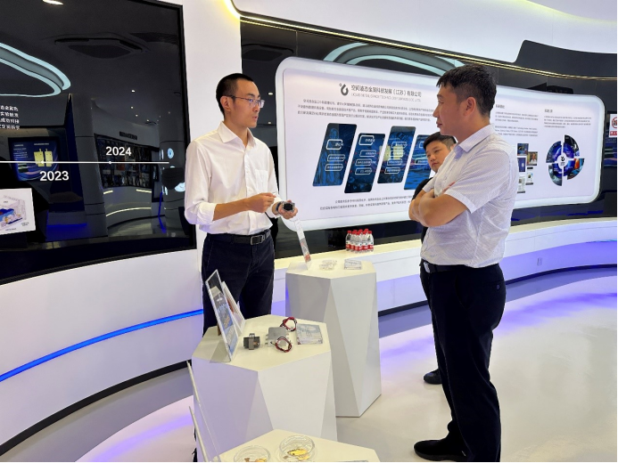 在空间液态金属科技发展(江苏)有限公司,总经理袁晓龙介绍道,公司研发团队已在液态金属领域深耕探索20多年,着力于液态金属热控技术在航空、航天领域的应用需求,实现关键支撑性装备研制和产业化,服务航天和航空技术应用长远发展。双方就公司目前的技术突出优势、国内外技术壁垒及将技术运用于石油勘探领域的可能性进行了深入交流,双方就下一步深化产学研用协同创新,开辟发展新领域新赛道等合作达成一致。