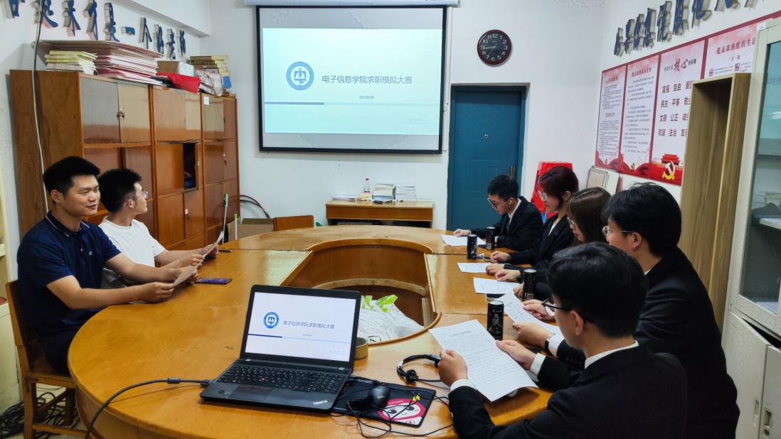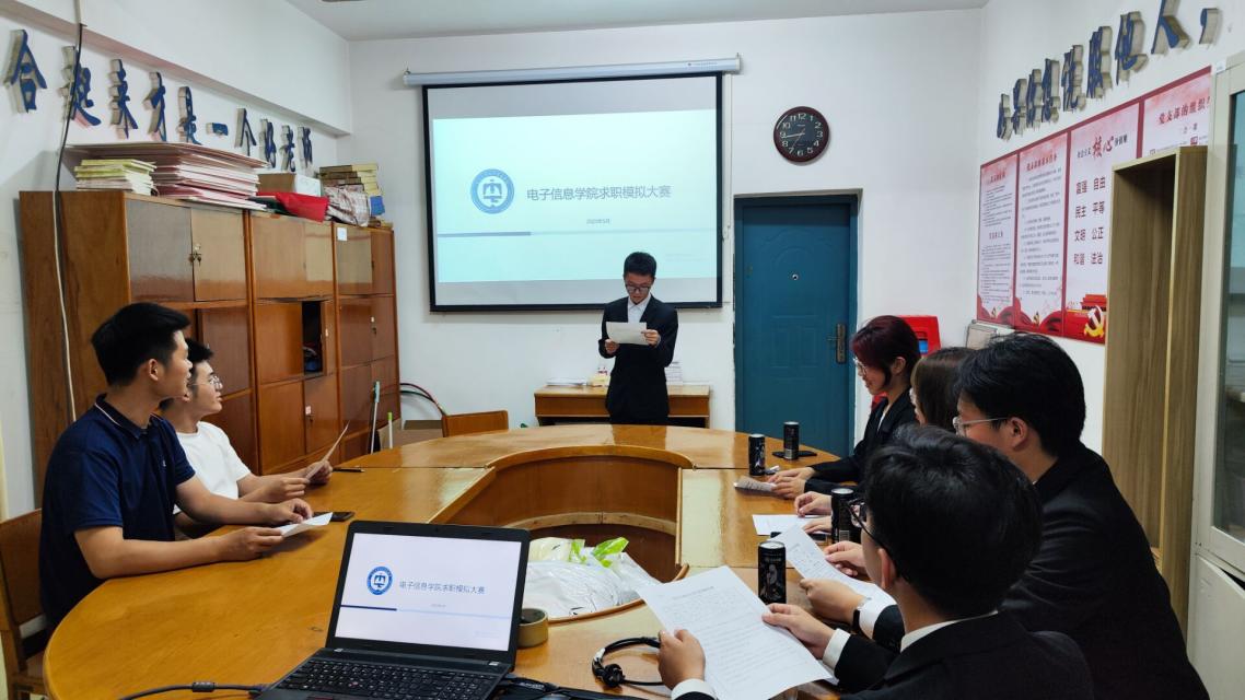 电子信息学院于党员活动室开展了勇往“职”前,“就”在长大——模拟求职招聘大赛,由王齐禄、万谦担任评审。