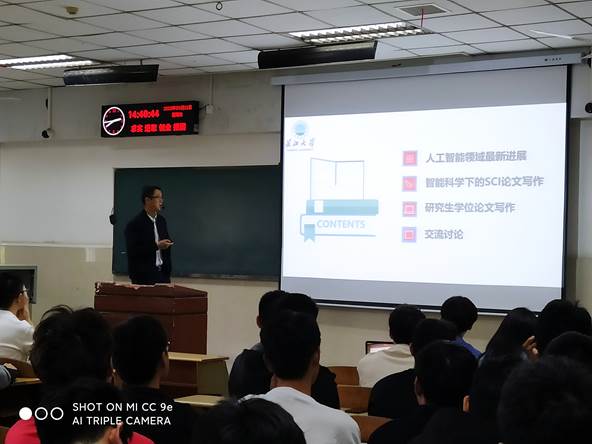 研究生导师、研究生和部分本科生参加了此次讲座。讲座持续一个半小时,从人工智能领域最新进展、智能科学下的SCI论文写作、研究生学位论文写作、交流讨论等四个方面展开。