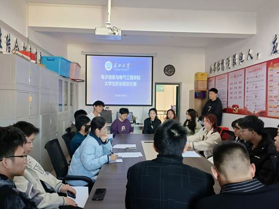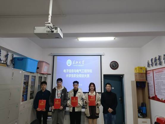 在党员活动室开展了以“筑梦青春志在四方,规划启航职引未来”为主题的首届大学生职业规划大赛。辅导员万谦、李蒙、沈马锐、朱锐受邀作为本次大赛评委。