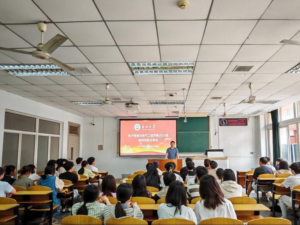 (通讯员 谢奕帅)为助力2022级学子科学规划升学路径,明晰保研政策与要求,5月8日,学院于13教B210教室举办“保研经验分享交流会”。活动特邀廖明天、程卓玲、郑卓宇、邓豪杰、戴凌祥5位2021级成功保研学生担任主讲嘉宾,本次活动吸引了50余名学生到场学习交流。会议由2022级本科生辅导员沈马锐主持。