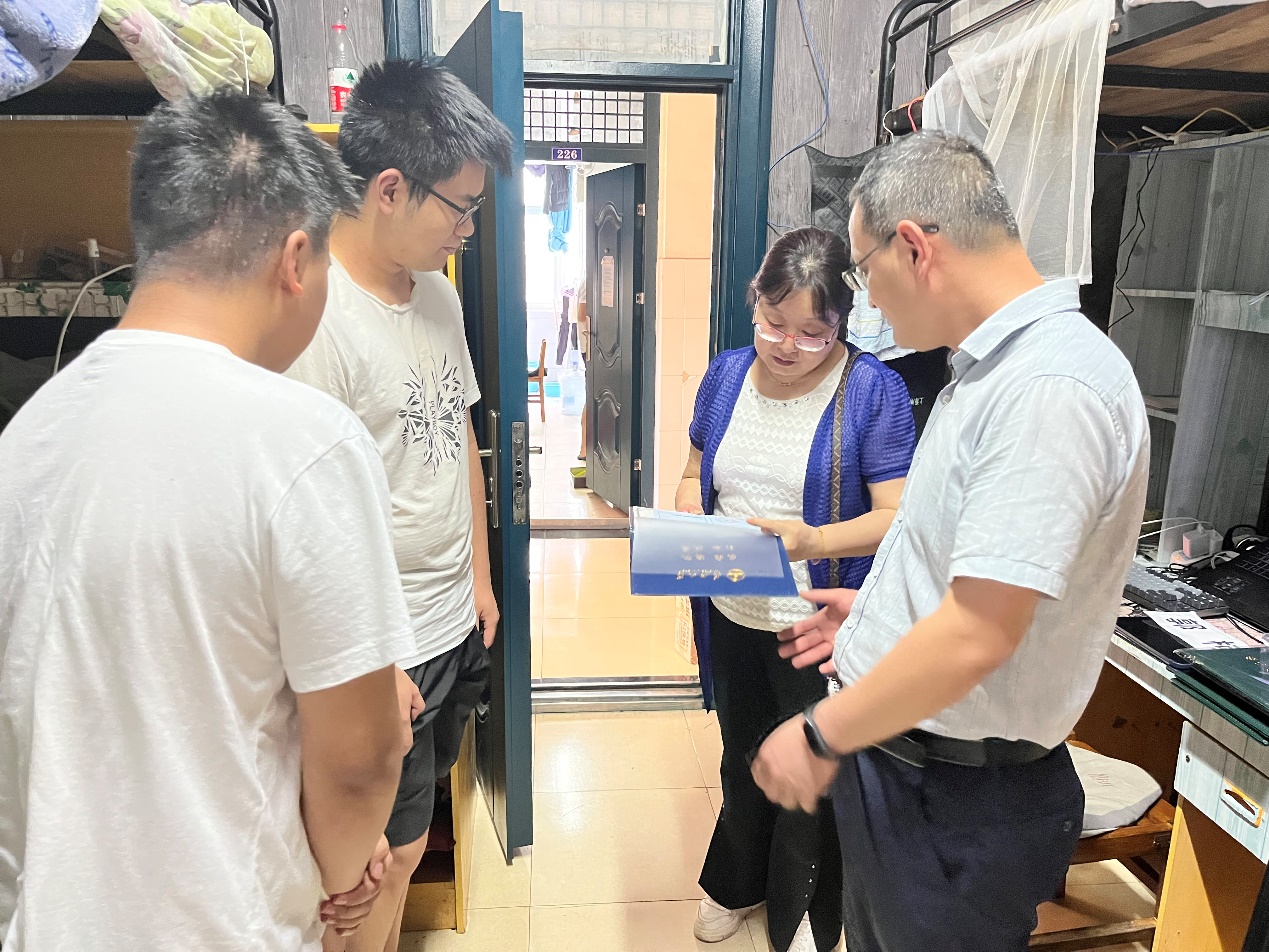 6月15日,电子信息学院党委书记刘逸、副书记郭启炜及辅导员王齐禄一同走访了毕业年级学生宿舍,为毕业生送上祝福。