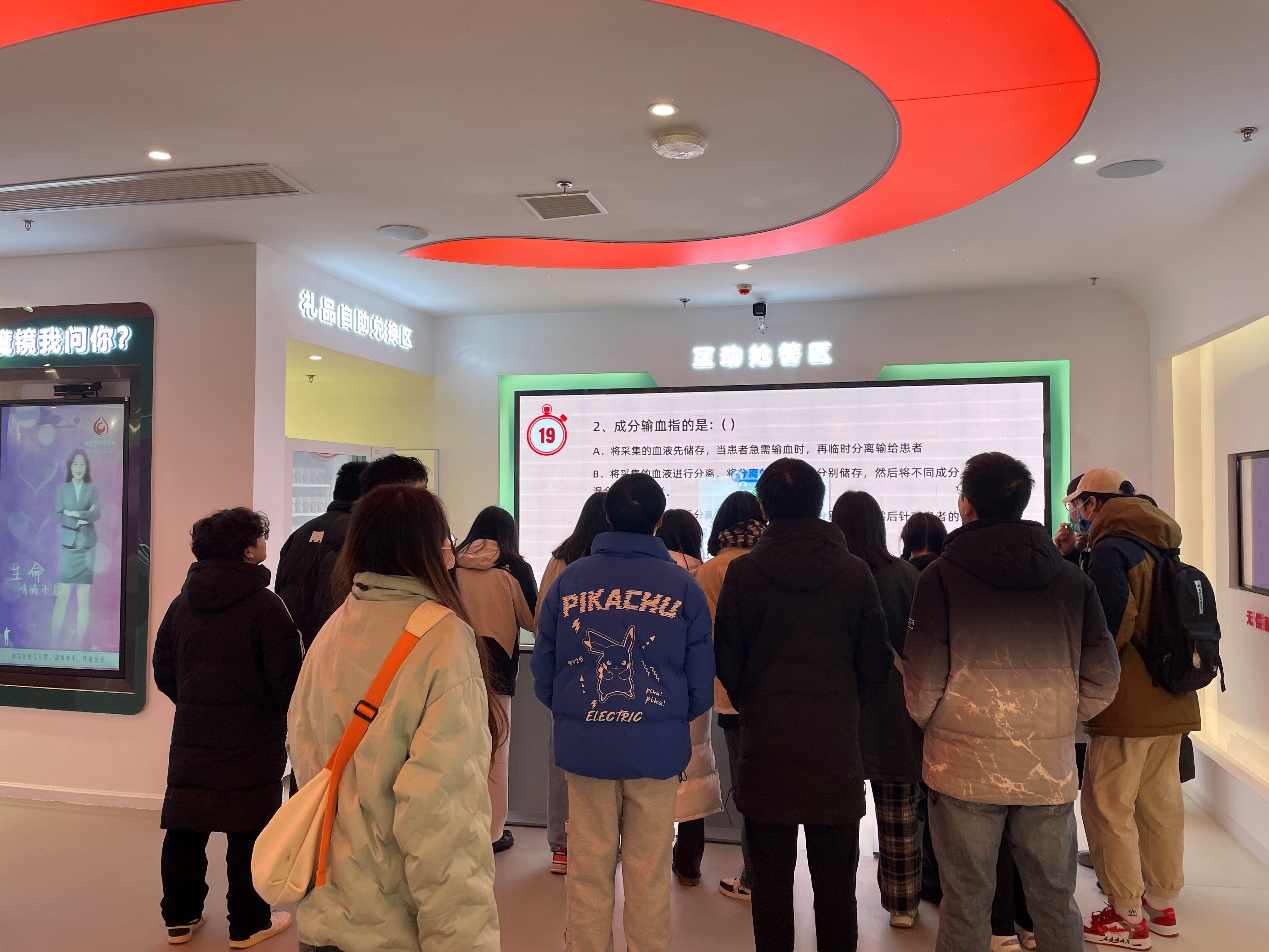来到荆州市中心血站,党员同志们在讲解员周玉琳的带领下开始参观。首先来到了血站的多媒体馆,在多媒体技术的趣味呈现下,大家了解了血站的发展历史,重新认识了人体的“血液”,学习了血液从一个人到另一个人的整个过程。