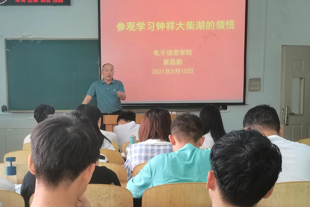 为拓展丰富研究生党课知识,发扬柴湖移民自力更生、艰苦奋斗的精神,2021年5月10日,电信学院副院长蔡昌新为2020级研究生讲授钟祥大柴湖的相关党课。
