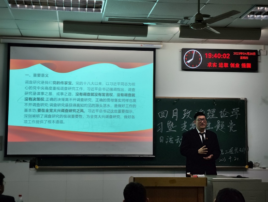 学院各党支部也陆续组织开展了四月主题党日活动。全体党员一起重温了入党誓词、交纳了本月党费、集体诵读了党章、聆听微党课、开展了理论学习。集体学习后,全体党员就开展“高质量调查研究”展开讨论。