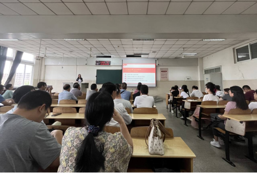 8月27日,学院党委在12教202组织开展主题教育专题培训,学院全体党员参加,培训会由党委书记郭梅主持。