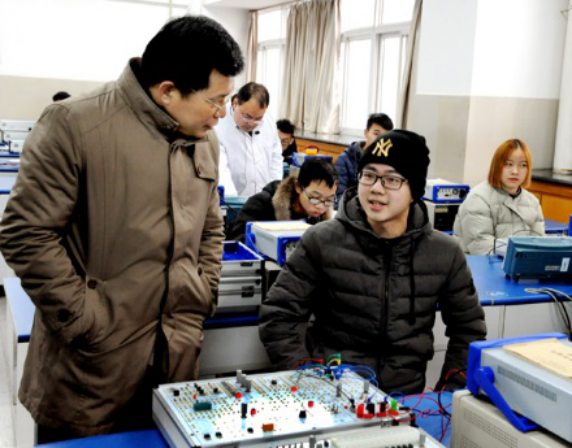 (通讯员 王红艳)2019年1月5日,省教育厅党组书记、厅长陶宏来校调研并观摩了亚洲av 国家级电工电子实验教学示范中心实验室,学院院长兼示范中心主任熊晓东教授向陶厅长汇报了示范中心建设情况。陶厅长走进实验室,与正在上课的学生交流,了解其学习情况,叮嘱学生好好学习、爱校爱专业。参观结束时,陶厅长鼓励学校继续推进特色发展,抓机遇、补短板,为荆州乃至湖北教育事业做出更大的贡献。