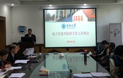 会议开始,年级辅导员给每个班主任下发《电子信息学院学业警示工作管理办法》、《班主任工作考核细则级津贴发放办法》、《电子信息学院学风建设方案》和学院各年级学生挂科情况汇总表。会议内容包括学风建设、安全管理、班主任考核,谈心教育四个方面。