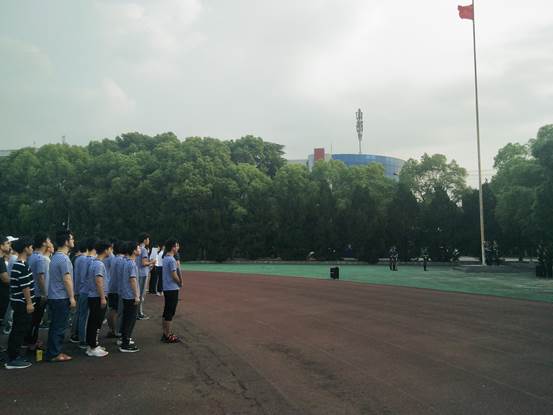 18级全体学生在各班体育委员的安排下,按照班级指定位置整齐站定,等待着升旗仪式的开始。