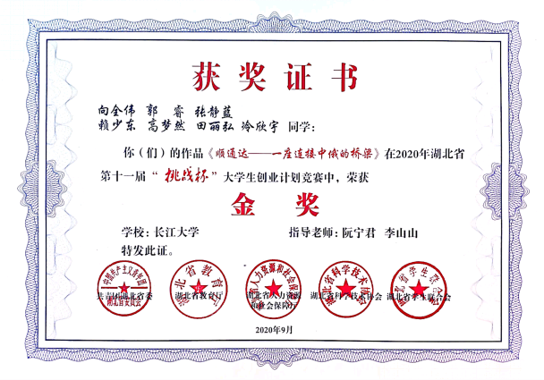 有3个项目脱颖而出,其中有一个便是“顺通达——一座连接中俄的桥梁”项目。从2019年参加中国大学生服务外包创新创业大赛获得国家三等奖到2020年参加三创赛获得省赛二等奖、互联网+省赛铜奖,再到2020年参加“挑战杯”大学生创业计划竞赛获得湖北省金奖并入围国赛,这支名为“开创者”的创业团队把自己的青春梦想盛开在“大学”的土地上。