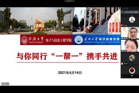 电子信息学院与同济大学电子与信息工程学院建立对口合作工作微信群,并于2021年4月14日9:30召开线上就业帮扶工作交流推进会,共同制定就业创业“一帮一”行动计划,两院分管学工的党委副书记、全体辅导员参加会议。