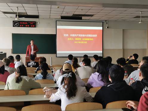 2021年4月22日14:00,电子信息学院在东校区12教304开展了以“共产党的奋斗历程及启示”为主题的入党积极分子培训。本次培训由学院党委副书记郭启炜主讲。