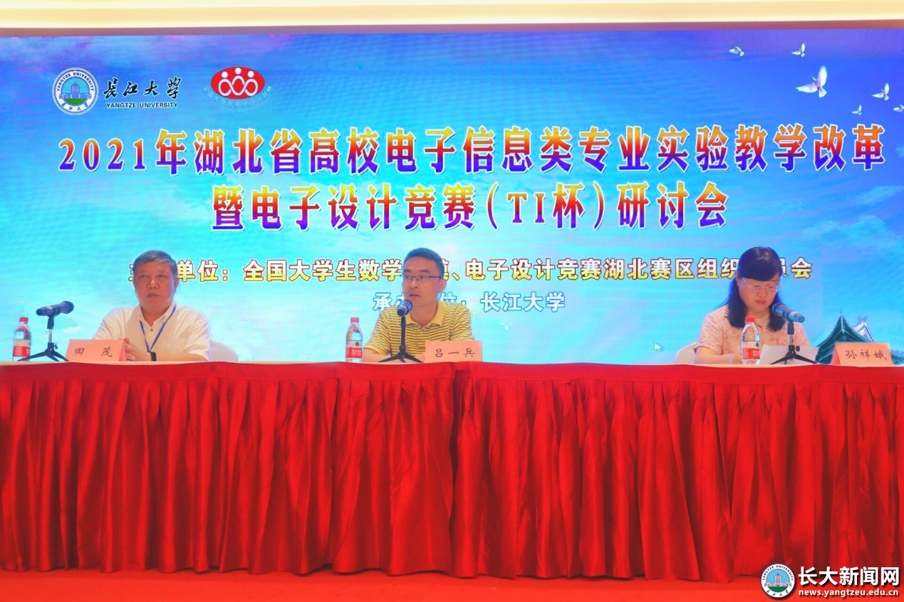 (通讯员 沈马锐)7月10日上午,2021年湖北省高校电子信息类专业实验教学改革暨电子设计竞赛研讨会在我校召开。全国大学生电子设计竞赛湖北赛区专家组组长田茂教授,来自武汉大学、华中科技大学、武汉理工大学等35所单位的100多名专家学者代表参会。副校长吕一兵参加开幕式并致辞。
