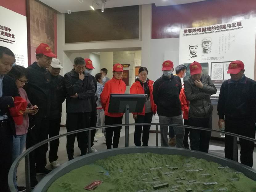 学院教工党员首先参观了新四军第五师纪念馆。在讲解员的深情讲解中,大家回顾了革命的峥嵘岁月:抗战期间,新四军第五师坚决执行党的全面抗战路线和战略决策,依靠鄂豫边区人民群众开展游击战争,从160多人逐步壮大为5万正规军和30万民兵的抗日武装力量,建立了以大悟山为中心的9万多平方公里抗日民主根据地,实现了从四面八方对日军在华重要据点武汉的战略包围,在中华民族抗战史上树起了一座不朽的丰碑。