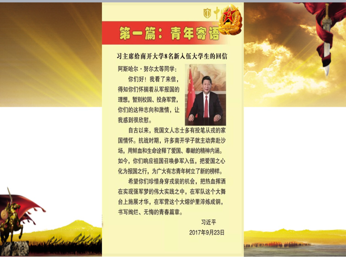 征兵工作夯实了基础,相信广大学子会在以后的学习生活中为自己的青春增添浓墨重彩的一笔。