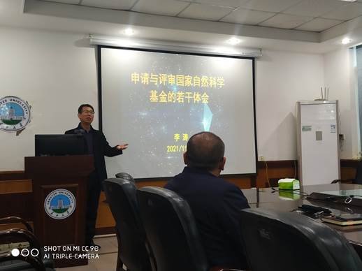 接下来学院李涛教授根据自己申报和评审国家自科基金的经历,从不同角度谈了若干体会。李教授从国家自科基金的定位出发,提出了基金申请书须达到的三个标准,并从如何选题、如何写好申请书等方面和学院教师分享了满满的干货。