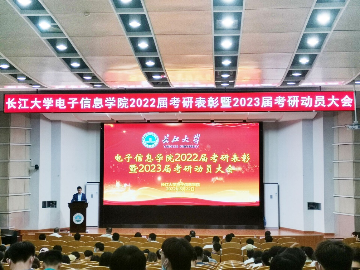 (通讯员 李月梅 胡桐/文 胡桐/摄)研途有你!一“研”为定!5月22日晚,电子信息学院于东校区12教405报告厅开展2022届考研表彰暨2023届考研动员大会。电信学院全体院领导出席本次会议,2022届考研先进个人代表、485名2023届本科生共500余人通过线上、线下共同参会。会议由学院2023届本科生辅导员沈马锐主持。