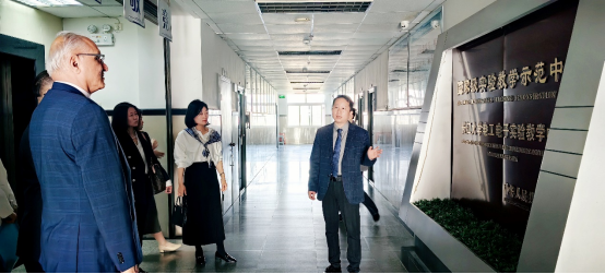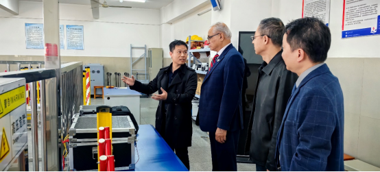 随后Shahzad Ahmad参观了示范中心基础实验室和专业实验室。基础实验室负责人覃洪英、专业实验室负责人叶刚、甘如饴、邹必昌等就电子技术实验室、自动化综合实训实验室、高电压实验室的实验室仪器设备、所开设实验向Shahzad Ahmad做详细介绍。