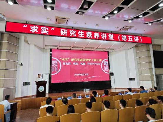 6月25日下午,在东校区12教405报告厅,学校“求实”研究生素养讲堂第五场开讲。美国休斯敦大学机械工程系教授宋钢兵、电气与计算机工程系副教授陈杰夫受邀做学术报告,来自电信、计科、机械及城建学院的300余名师生现场聆听。报告会由电信学院院长罗明璋主持,校党委副书记杜国锋致欢迎辞,研究生院领导关辉部长出席会议。