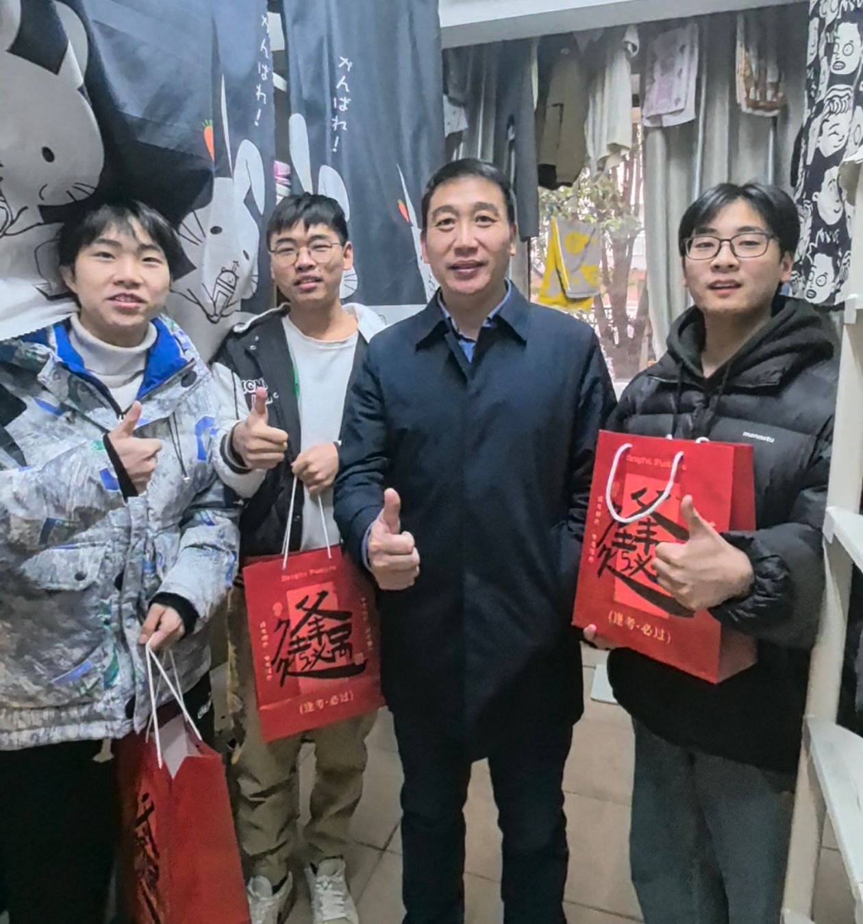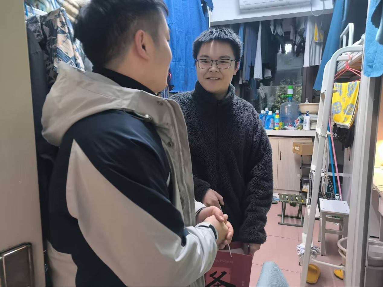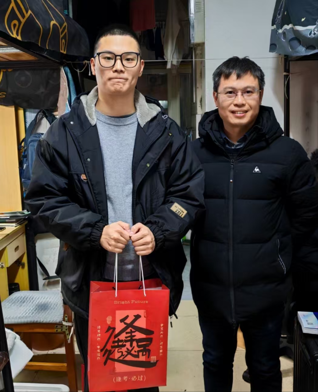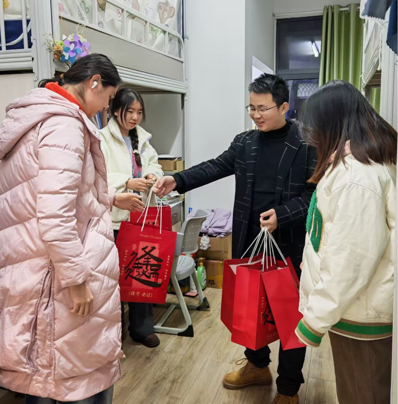 12月16日至17日,学院领导、年级辅导员和班主任走访考研学生寝室带着满满的关怀与祝福,将这份充满爱与祝福的“考研大礼包”亲手送到每一位考研学子的手中。
