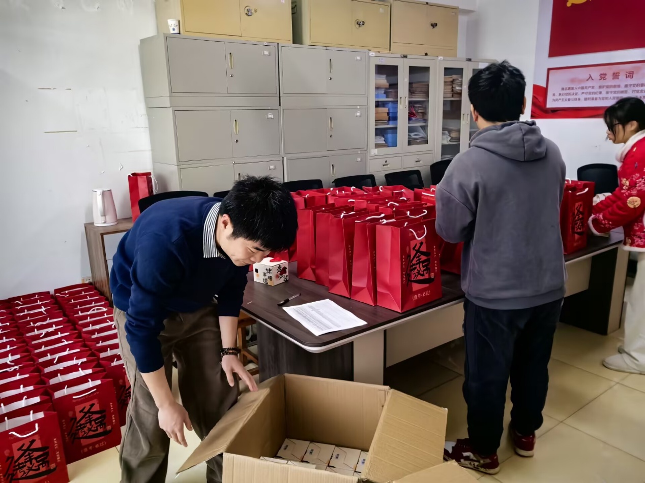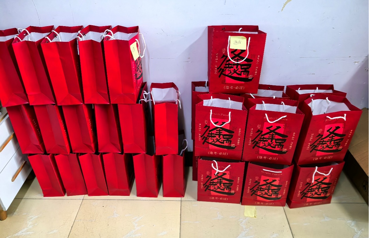 12月伊始,学院便开始策划研途送温暖活动,学院领导亲身参与策划,和年级辅导员、班主任一起组成“送福小分队”积极配合,共同开启暖心祝福。12月16日上午,学生志愿者开始考研大礼包的分装,大家分工明确,井然有序地将一份份蕴含着美好寓意的礼物包装好。