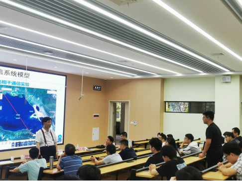 随后,罗明璋院长主持学院师生聆听了报告。柯院士介绍了西安理工大学无线光通信与网络研究中心,深耕无线光通信领域,近期在学术研究、技术创新与应用实践中取得多项突破性成果,展现了我国在该领域的领先实力。柯院士深入浅出地介绍该技术核心原理与应用场景,阐述了利用激光传输信号,具备通信速率高、无需频谱许可、抗电磁干扰等技术优势,介绍了国内在北斗卫星、高铁通信等领域加速布局,自主研发了无线激光综合业务通信机,通信速率达1.25Gbps,误码率优于10⁻⁹,并成功完成了青海湖100公里无线光相干通信实验,突破了长距离传输的技术瓶颈。在学生培养方面,柯院士强调“一人一创新点”理念,导师需聚焦指导深度,通过项目实践提升科研能力。报告最后,柯熙政与学院师生就通信相关问题进行了深入的交流。
