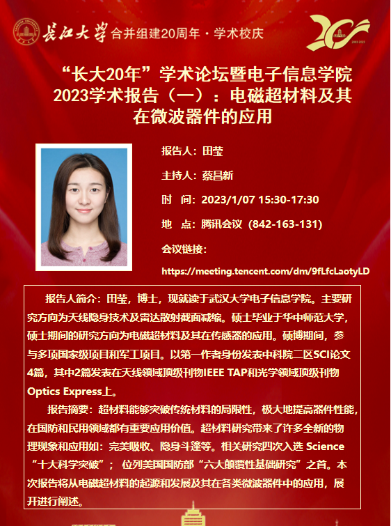 “长大20年”学术论坛暨电子信息学院2023学术报告(一)